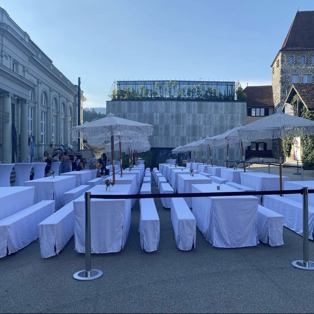 Eine große Auswahl an eleganten Möbeln – von stilvollen Sitzgelegenheiten über edle Tische, Bierzeltgarnituren und Liegestühlen bis hin zu exklusiven Loungemöbeln – sorgt dafür, dass Ihr Event nicht nur funktional, sondern auch ästhetisch überzeugt. Wir bieten maßgeschneiderte Lösungen für jede Veranstaltung, sei es eine glamouröse Hochzeit, eine elegante Firmenfeier oder ein entspanntes Event im Freien. Unsere Möbel verleihen Ihrem Event eine gemütliche, aber zugleich raffinierte Atmosphäre, die Ihre Gäste begeistern wird. Jedes Möbelstück ist darauf ausgelegt, Komfort und Stil miteinander zu vereinen und sich perfekt in das Ambiente Ihrer Veranstaltung einzufügen.